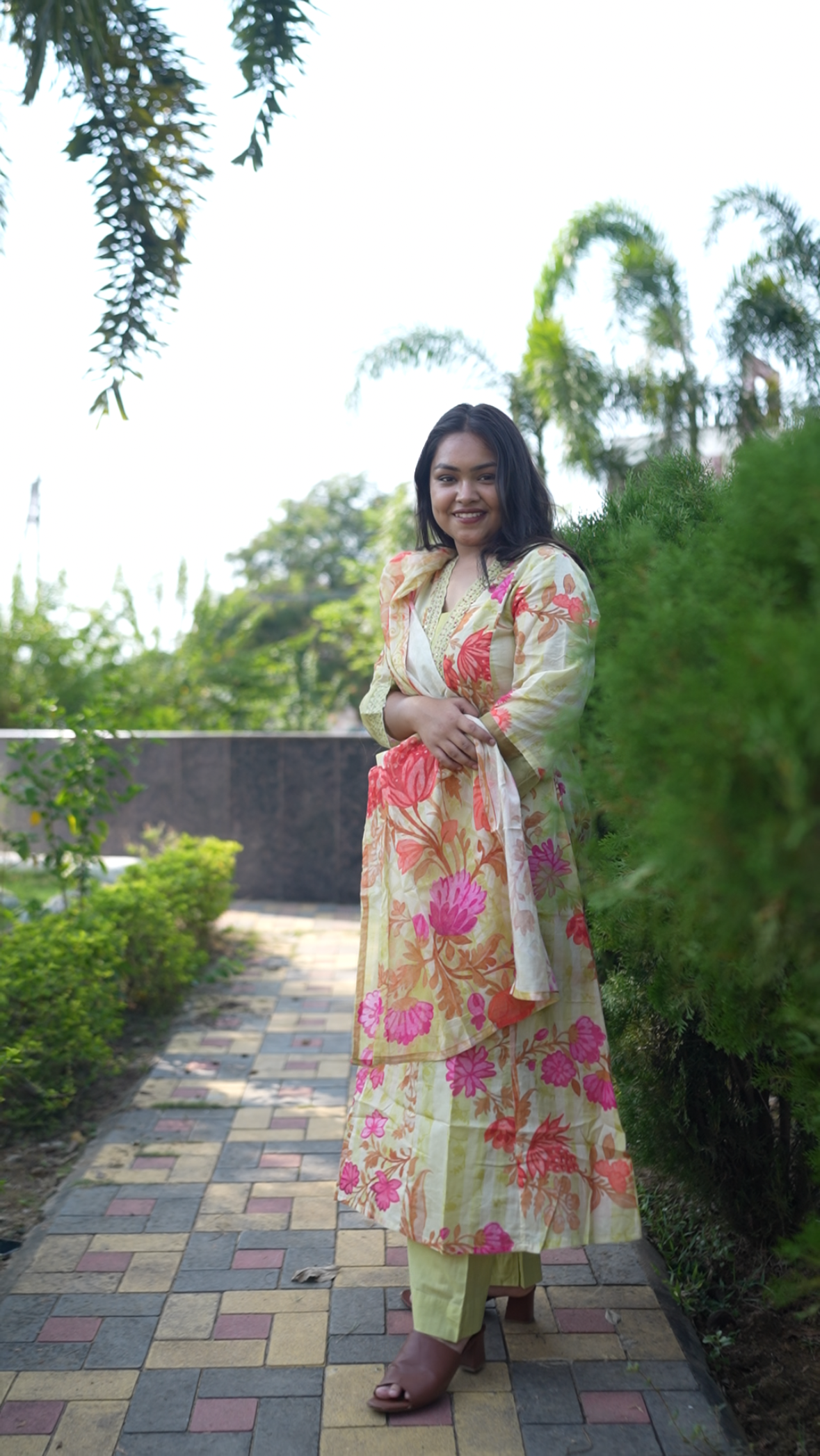 Experience the comfort and breathability of the Summer Garden pure cotton suit, expertly crafted for warm weather. This suit offers natural softness and excellent moisture absorption, keeping you cool and comfortable throughout the day. Its lightweight fabric ensures ease of movement, making it ideal for both casual and semi-formal occasions in the summer season.